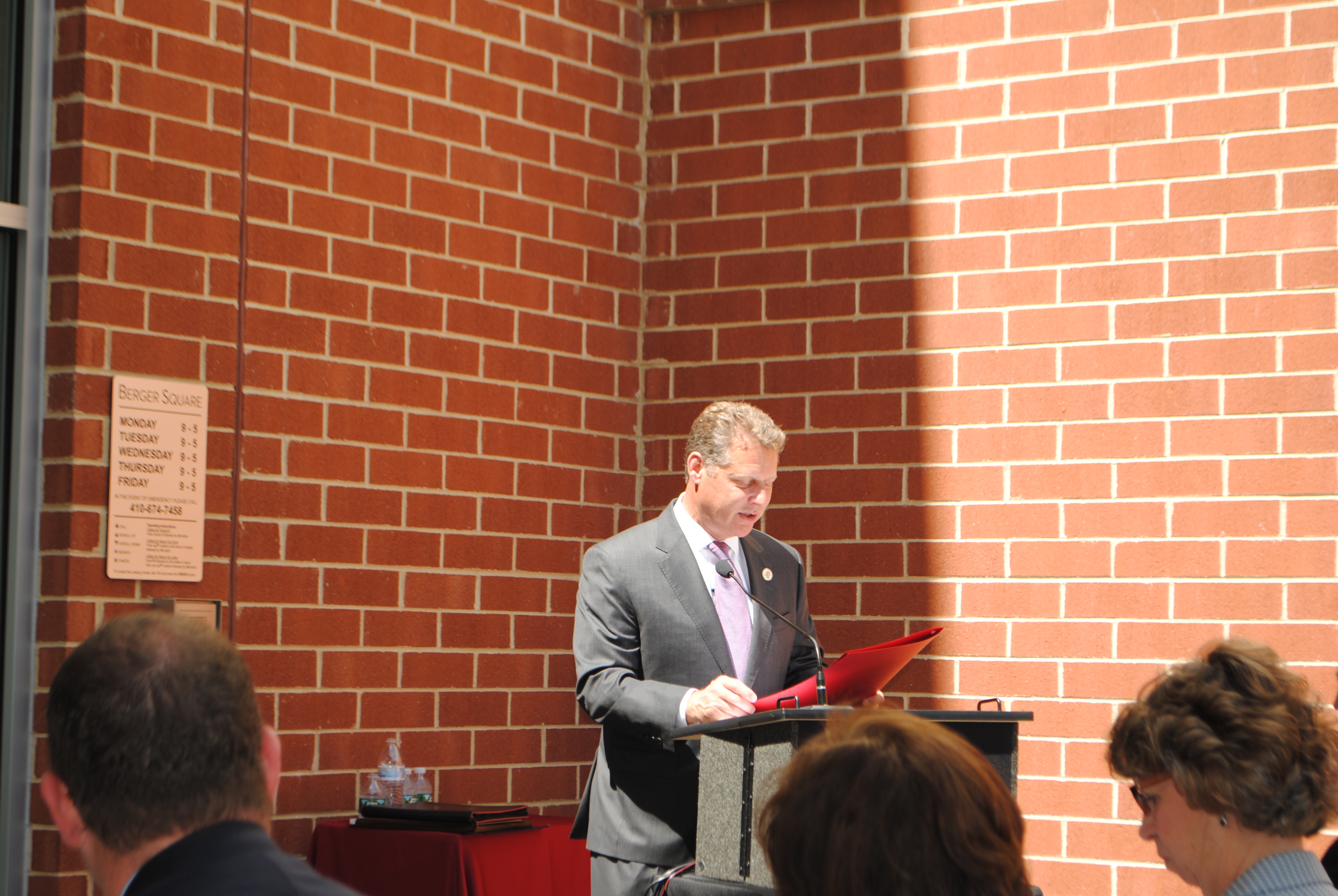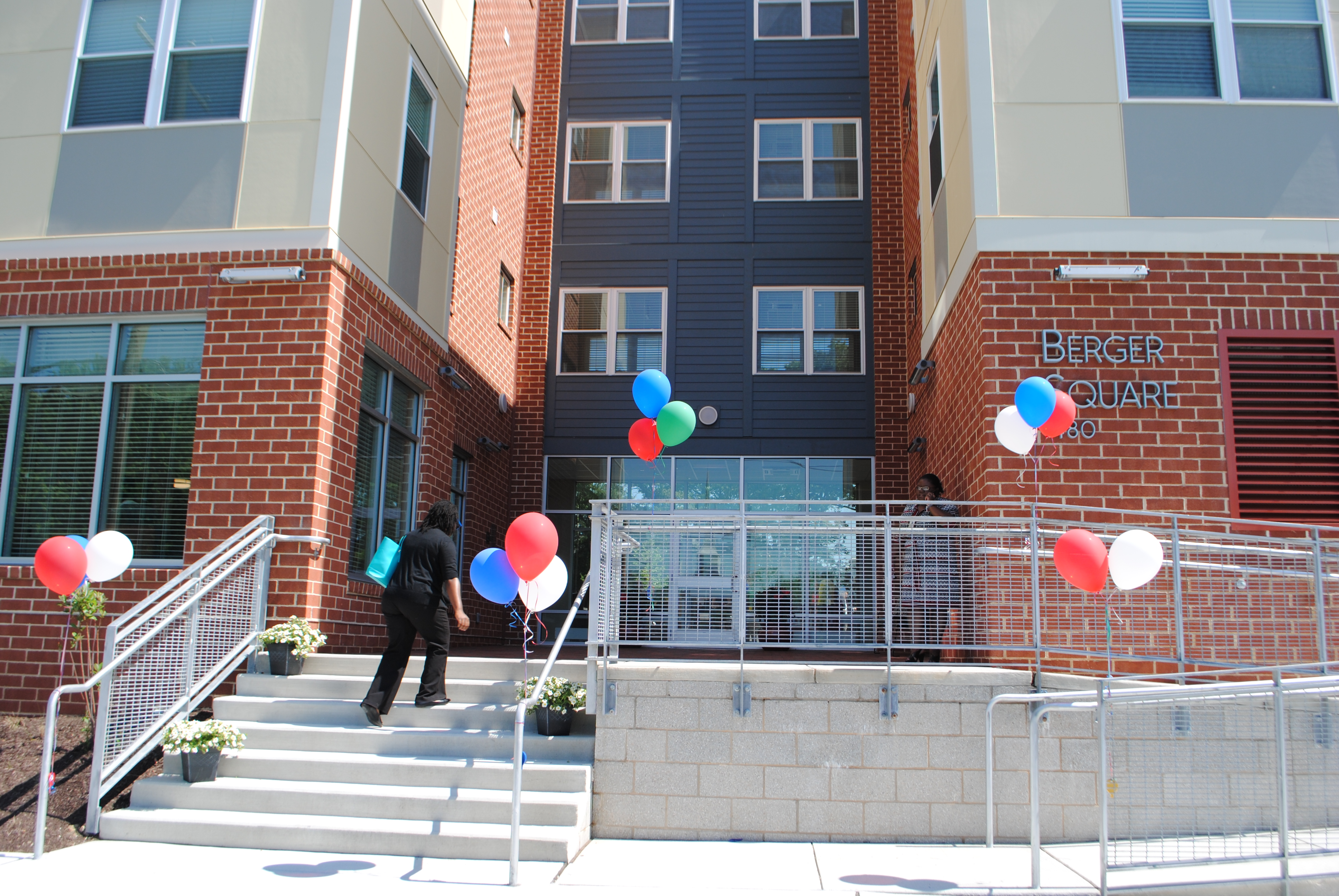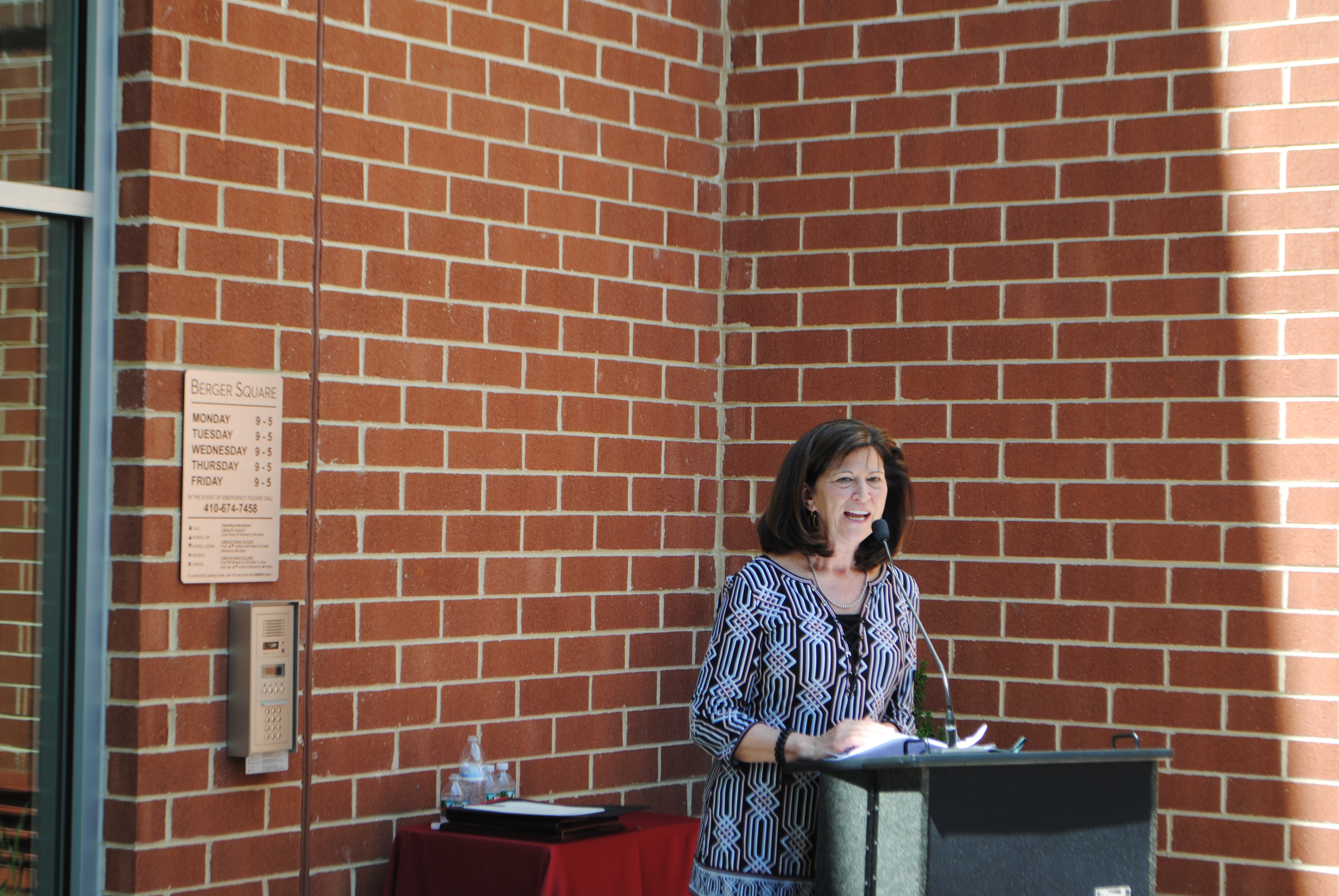 ODENTON, MD- On Wednesday, May 17th Arundel Community Development Services, Inc. (ACDS) Executive Director Kathleen Koch joined County Executive Steven Schuh and State officials to participate in the grand opening celebration of Berger Square, a brand new 48 unit development that provides affordable housing in Odenton. Watch the Berger Square grand opening ceremony here. Berger Square was developed by Homes for America in partnership with Foundation Development, LLC and Chesapeake Neighbors, LLC to serve low and moderate income households earning less than 60 percent of the area median income. The project involved a mix of financing, including a $750,000 federal HOME loan administered by ACDS and a PILOT Agreement provided by the County to leverage a total of $15.7 million in private equity and government loans.